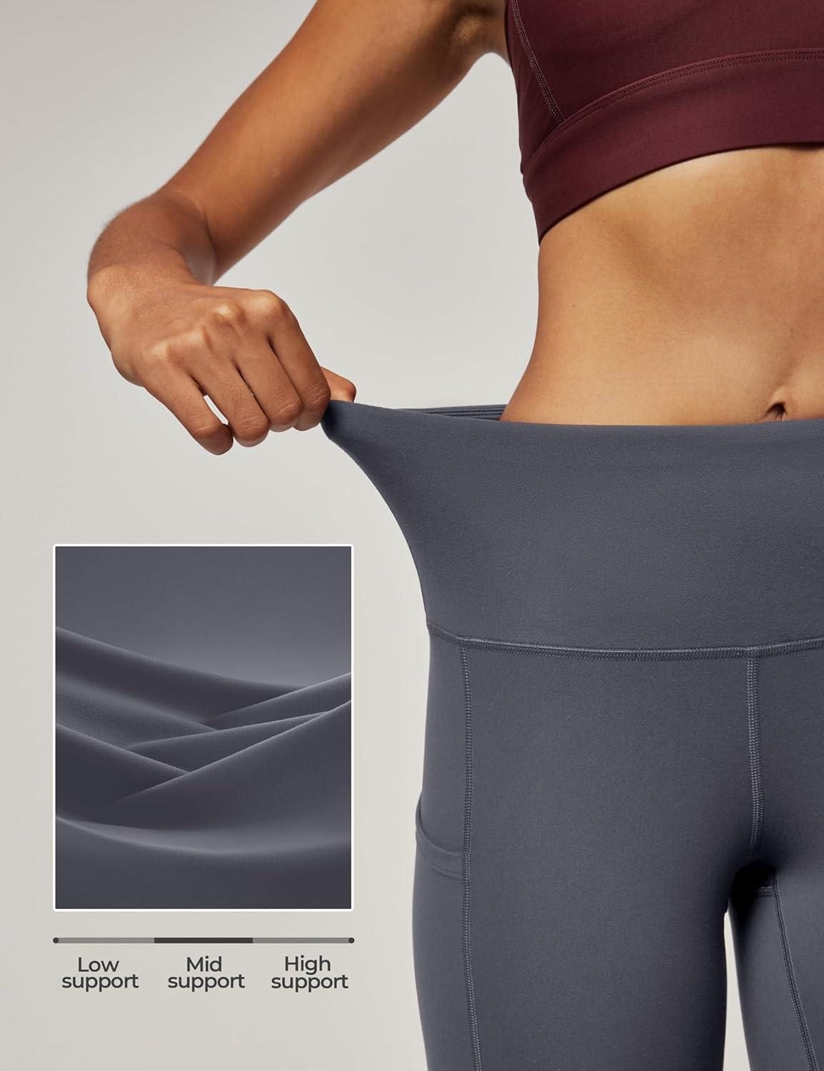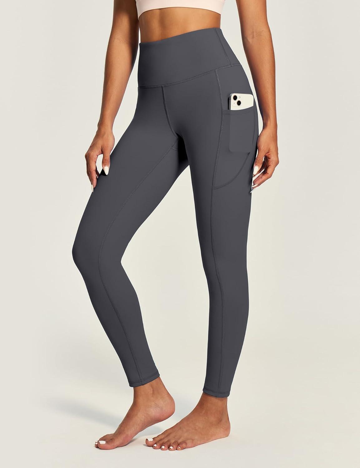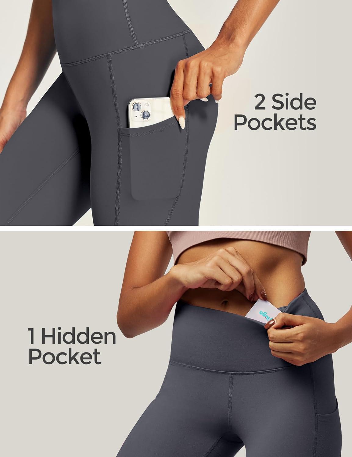 IUGA High Waist Yoga Pants with Pockets, Leggings for Women Tummy Control, Workout Leggings for Women 4 Way Stretch(Dark Grey)