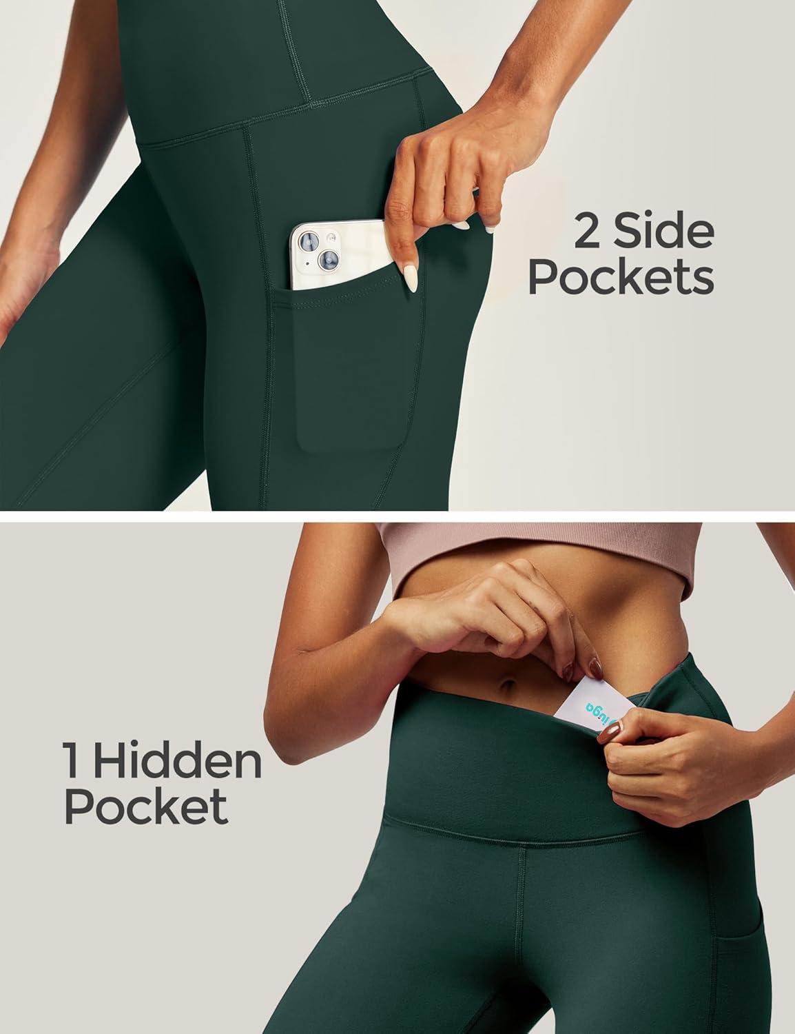 IUGA High Waist Yoga Pants with Pockets, Leggings for Women Tummy Control, Workout Leggings for Women 4 Way Stretch(Forest Green)