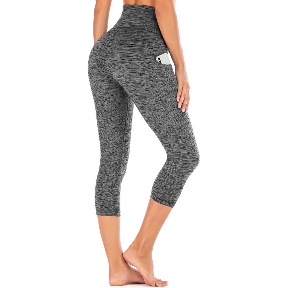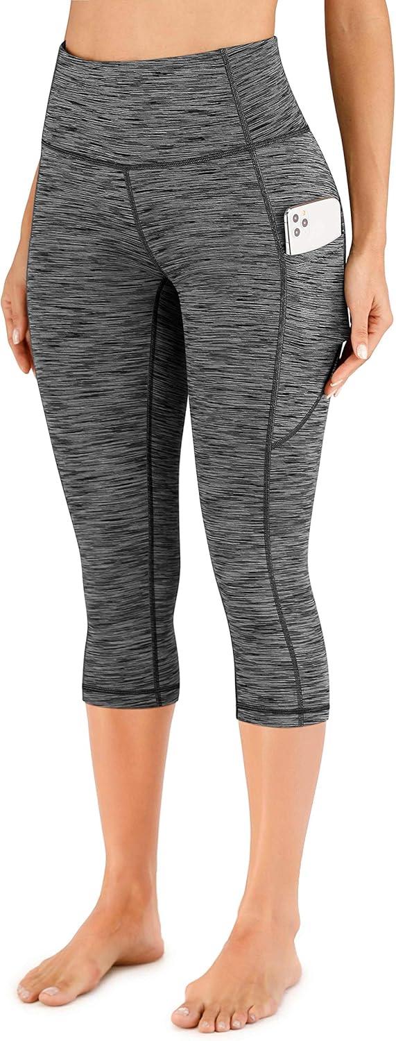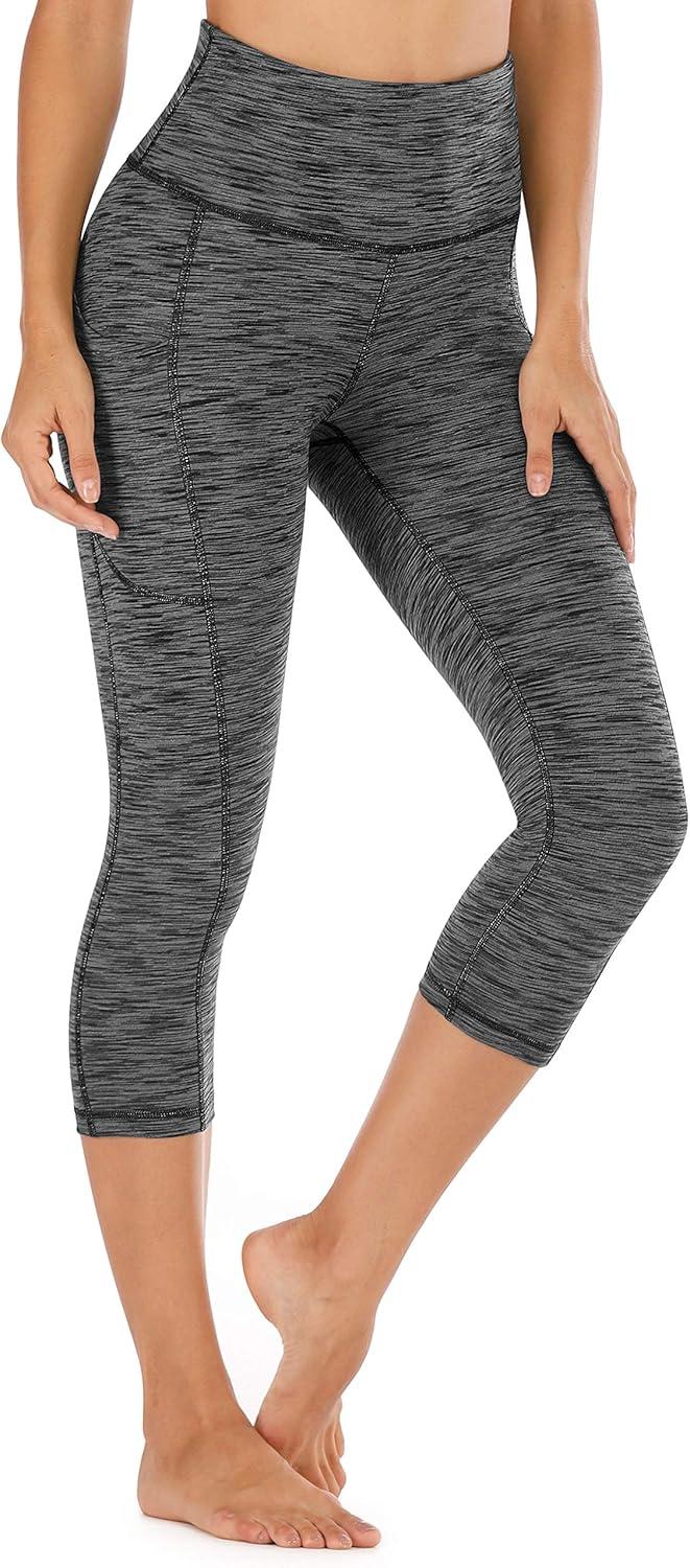 IUGA High Waisted Yoga Pants for Women with Pockets Capri Leggings for Women Workout Leggings for Women Yoga Capris(Space Dye Gray)